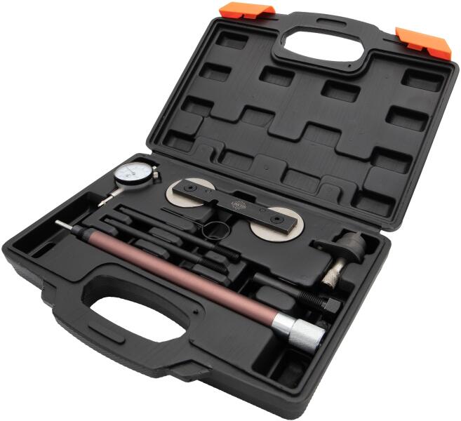 Főbb jellemzők Komplett készlet : Tartalmazza a vezérműtengely reteszelő szerszámot, a mérőórás tesztjelzőt, a TDC (Top Dead Center) jelzőt, a vezérműtengely beállító szerszámot, a feszítőcsapot, a főtengely rögzítőcsapját és a vezetőcsapokat. A szerszámok széles választéka biztosítja, hogy minden meglegyen, ami a motor pontos időzítéséhez és beállításához szükséges. Motor kompatibilitás : Kifejezetten VAG 1.2, 1.4 és 1.6 FSi/Tsi motorokhoz tervezve. A készletben található szerszámok megfelelnek ezen motormodellek egyedi követelményeinek, így sokoldalú készlet a VAG különféle járműveihez. Tartós konstrukció : A készlet minden szerszáma kiváló minőségű anyagokból készült, biztosítva a tartósságot és a megbízhatóságot. Ez a robusztus konstrukció kritikus fontosságú ahhoz, hogy ellenálljon a professzionális környezetben végzett rendszeres használat igénybevételének. Precíziós eszközök a pontos időzítéshez : A tárcsás tesztjelző és a TDC jelző beépítése lehetővé teszi a rendkívül pontos mérést és a motor időzítésének beállítását. A vezérműtengely beállító szerszám és a rögzítőcsapok biztosítják a motor alkatrészeinek helyes elhelyezését és biztonságos tartását munka közben. Felhasználóbarát kialakítás : Az eszközöket a könnyű használat érdekében tervezték, olyan funkciókkal, amelyek növelik a pontosságot és a hatékonyságot. Ez a felhasználóbarát megközelítés mind a tapasztalt szerelők, mind a motoridőzítési munkában kezdők számára előnyös. Alkalmazások Volkswagen Golf Estate és Golf Plus Volkswagen Jetta és Passat Volkswagen Eos és Tiguan Volkswagen Touran Összefoglalva, a VAG 1.2, 1.4 és 1.6 FSi/Tsi motorokhoz készült vezérlésrögzítő egy átfogó és nélkülözhetetlen készlet mindenki számára, aki ezekkel a motortípusokkal dolgozik. Precizitása, tartóssága és széles körű alkalmazási lehetőségei kiváló befektetést jelentenek a motor pontos és hatékony időzítésének és karbantartásának biztosításához.